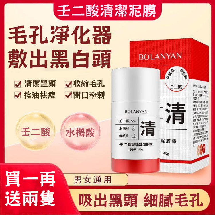 【男女通用 黑頭救星】壬二酸清潔泥膜棒 去黑頭 收閉口 收縮毛孔 清膚淨顏 美白肌膚 塗抹面膜通用
