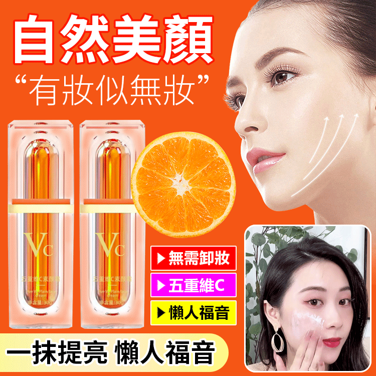【韓國進口】美妝達人推薦🔥維C素顏霜(買一送一)不會化妝,沒時間化妝,維C素顏霜,1分鐘完成妝容,提亮遮瑕不假白,無需卸妝 💖60%折扣! ! 最後特賣! 限時特售! ! ⏰庫存限量! 抓緊訂購喔!